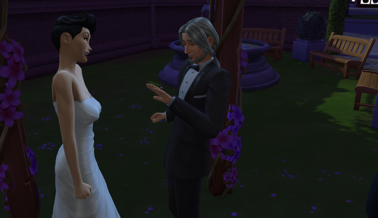 Now, we have a wedding to attend! I'm too lazy for chairs so I had the guests stand. I get nervous from the Sims 3 days where no one would sit and then the wedding failed because no one could get anywhere. So. Slow. This is much better.